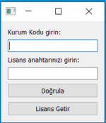 - Program yükleme işleminden sonra çalıştırınca bir sefere mahsus sizden kurum kodu ve lisans anahtarı bilgisi isteyecek